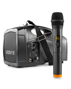 Porte voix à bandoulière sur batterie MP3/USB et FM, avec micros sans fil UHF - ST016Réf : 178.872NeufNous contacter -